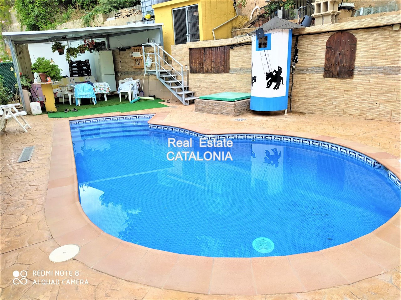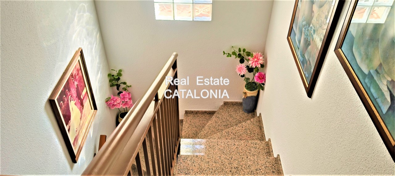 Bonita e interesante casa soleada con piscina en urbanización «MAS ROMEU» de Lloret de Mar, a tan sólo 3 minutos del centro, emplazada sobre una parcela de 436 m2 y con una construcción de 198 m2, formada por garaje + 2 plantas.